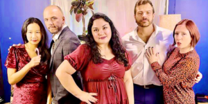 It was a wild night with the town’s only bulk-billed doctor, his millionaire wife and money-hungry mistress; a dancer turned paramedic who proposed to his Twilight-obsessed girlfriend; and deaths by poisonous lipstick! We had so much fun performing along Mark Grimes’ improvised music on keys!